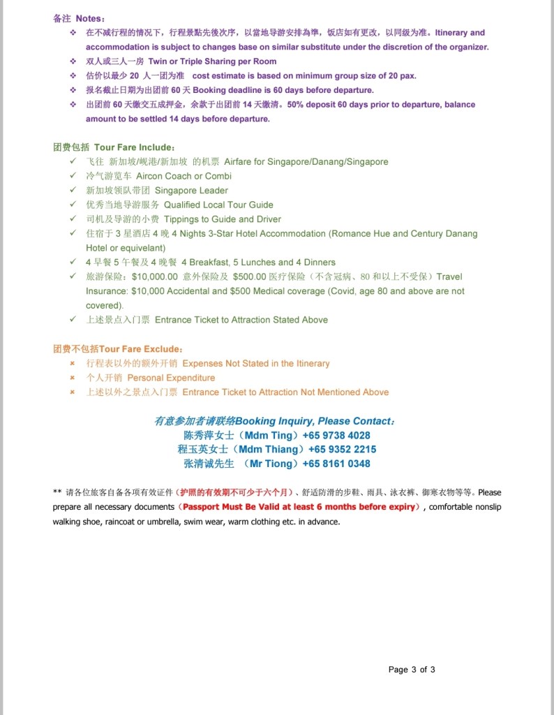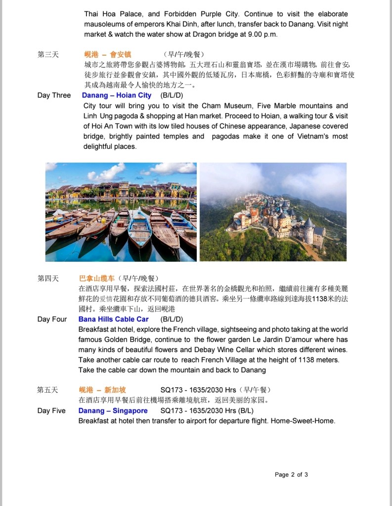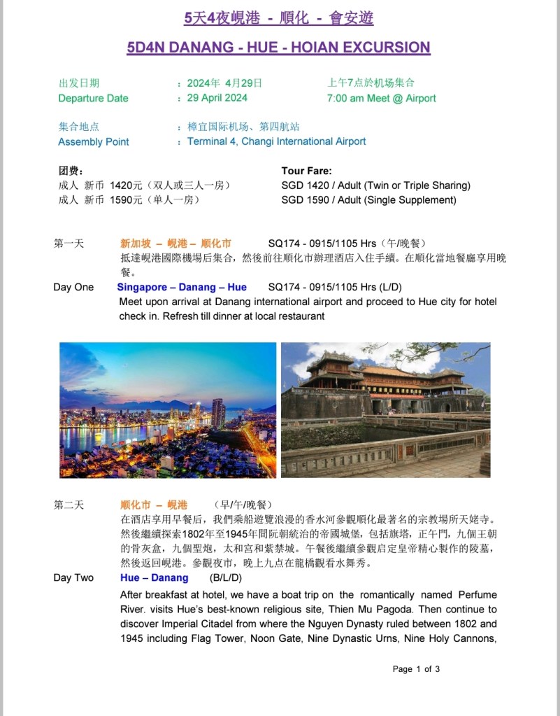 三山校友会组织股將主办SQ越南岘港-顺化-会安5天4夜遊!